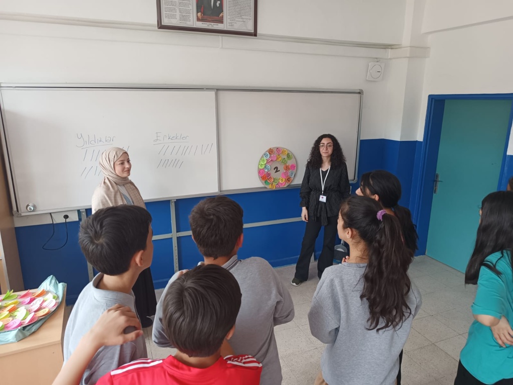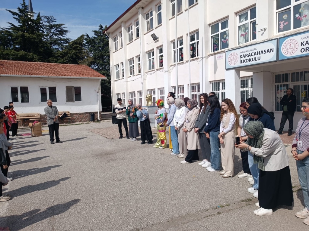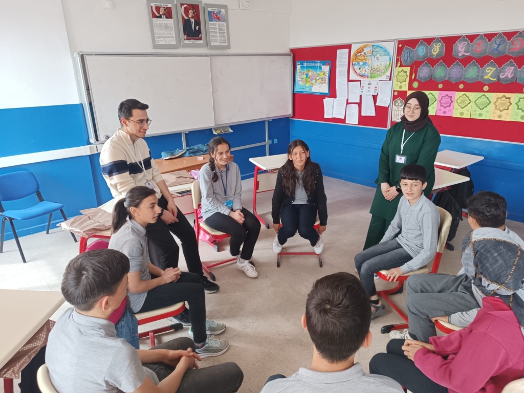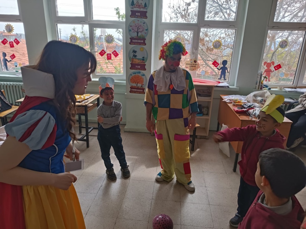 Okulumuzu da ziyaret eden 45 kişilik öğrenci topluluğu ekibi gittikleri okullardaki öğrencilere kırtasiye setleri, aktif faaliyetlerini arttırmaları için spor malzemeleri ve okulların kütüphanelerini zenginleştirmek için kitaplar getiriyorlar. Üniversite öğrencilerinin bir kısmı çocukları eğlendirmek için palyaço ve pamuk prenses kıyafetleri giyerek minik öğrencilerle vakit geçiriyorlar.